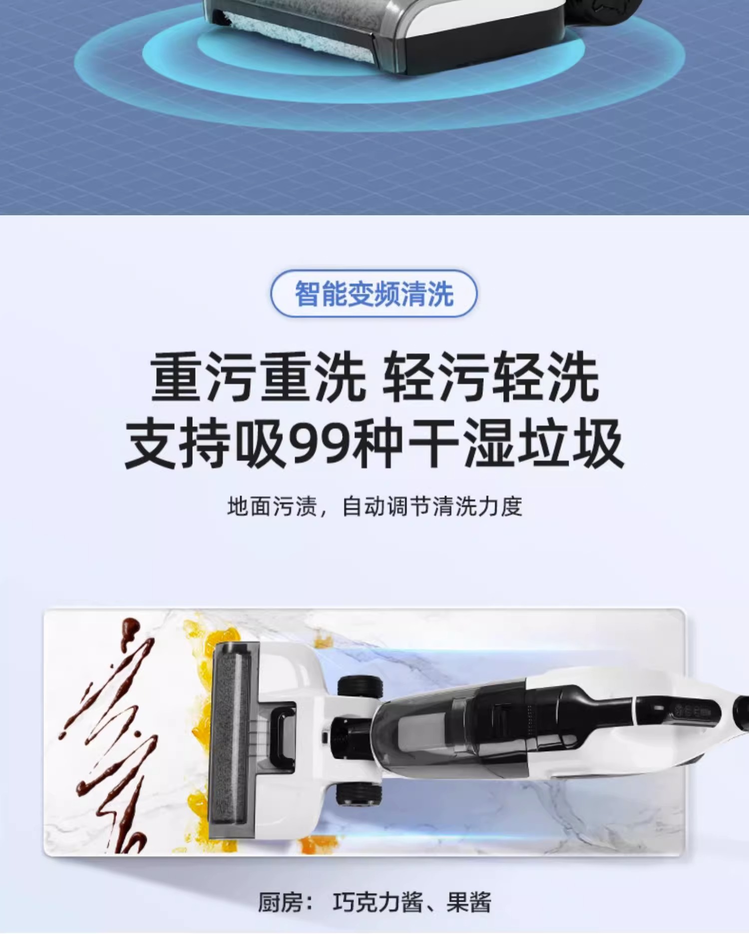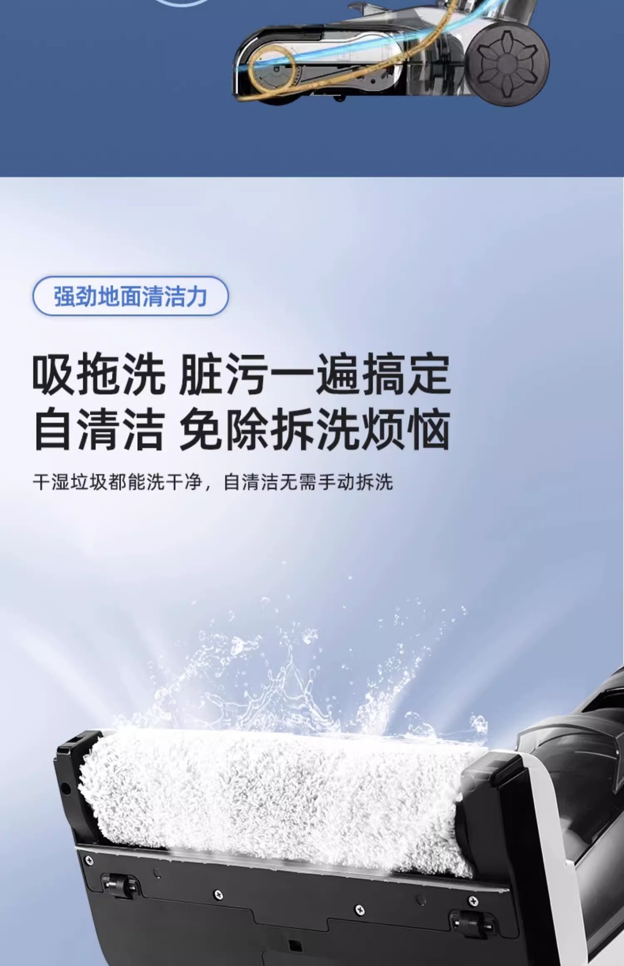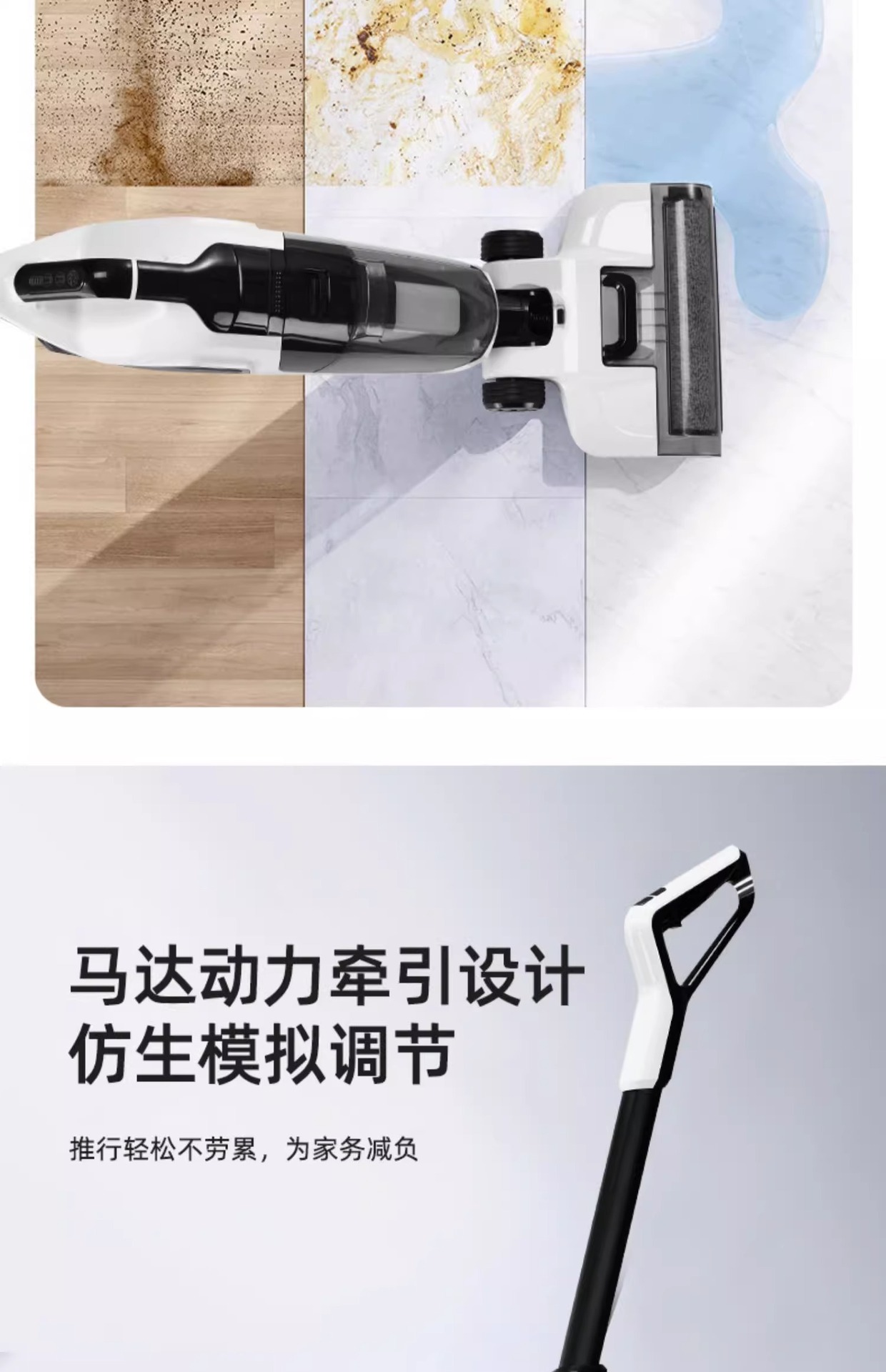 家用无线吸拖洗一体机,是一款集吸尘、拖地、自清洁三大核心功能于一体的智能清洁家电,以 “一机搞定全屋清洁,彻底解放双手” 为核心,打破传统扫地、拖地、洗拖布的繁琐流程,适配木地板、瓷砖、大理石、短毛地毯等多种家居地面材质,成为现代家庭清洁的高效解决方案,轻松应对日常灰尘、油渍、汤汁、宠物毛发等多种污渍。